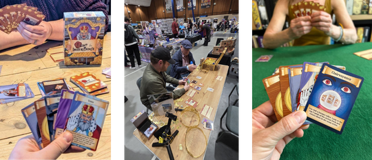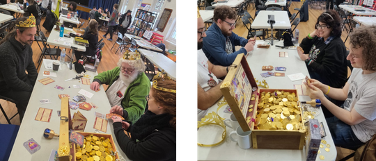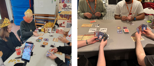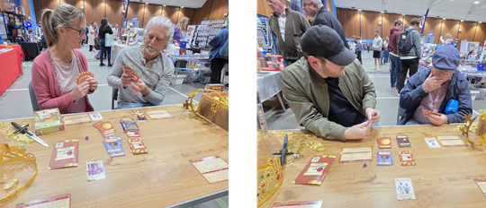 You can perform many actions from the cards you draw, such as spending coins, looking at what challenges might be coming in the future, retiring to your chamber and many more Each choice can provide you with an advantage or create obstacles for your rivals!